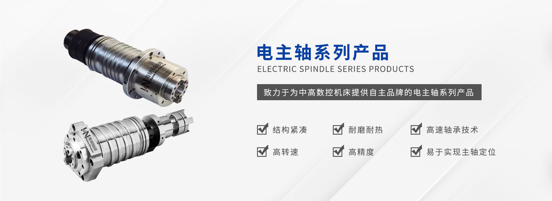 公司致力于為中高數(shù)控機床提供自主研發(fā)自主品牌的電主軸系列產(chǎn)品,通過堅持不懈的技術(shù)攻關和持之以恒的品質(zhì)管理,嚴格生產(chǎn)工序控制,售前售后的緊密跟蹤逐步形成一套完整成熟的業(yè)務體系。為不同類型機床提供主軸設計,現(xiàn)有數(shù)控車床主軸單元,數(shù)控車床電主軸、加工中 心電主軸及直聯(lián)機械主軸,走心車床電主軸,機械主軸,磨床電主軸,光伏主軸等系列主軸產(chǎn)品。